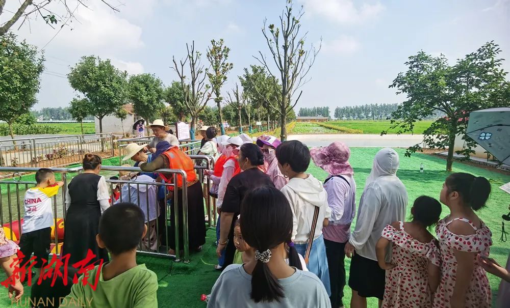 “前两天听朋友介绍,西洞庭可以漂流,趁暑假特意带孩子过来感受一下,确实不错啊,大人小孩都可以玩,安全又实惠。”8月3日,走进西洞庭管理区龙泉街道天福社区,道路宽阔整洁,车辆停靠有序,金灿灿的向日葵与清新翠绿的水稻田交相辉映,三两成群的游客在其间拍照“打卡”,儿童泳池里欢笑连连、特色漂流人气火爆,天福乐园乡村游在这个夏天迎来高光时刻。