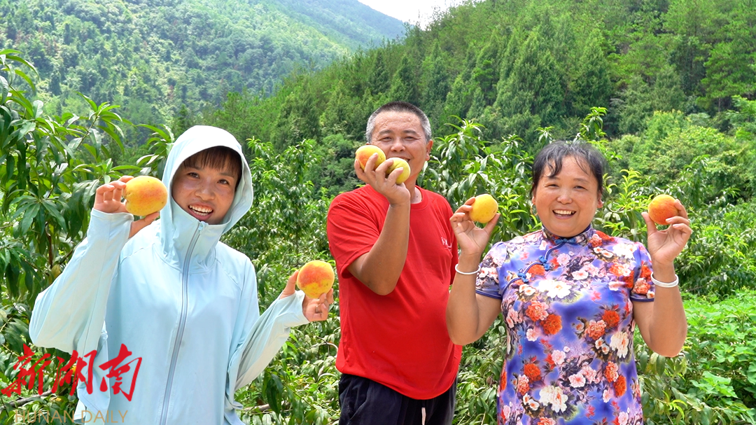 湖南日报·新湖南客户端8月5日讯(记者 钟彬豪 张雪 何蜜)8月3日,走进桑植县芙蓉桥白族乡合群村桃花园,映入眼帘的是压弯了枝头的黄桃,采摘园开放时间从8月持续至10月,游客们穿梭在果林里,品尝、采摘、拍照,尽情体验田园乐趣。刘家坪白族乡的陈女士专程带着孩子来到现场,亲自挑选、采摘、购买黄桃。“我看到朋友圈转发过来的,试吃了下,感觉不错就买了三十五斤,吃完了再回来买。”