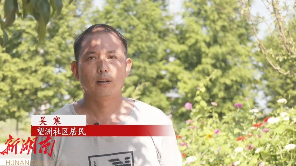 望洲社区居民 吴寒:我以前住在这里的时候,道路两边全是杂草,经过社区领导(的努力后进行了)改造,改造之后两边花草树木种的相当好,环境也相当优美,我住在这里现在感觉生活条件比较好,比较舒服。