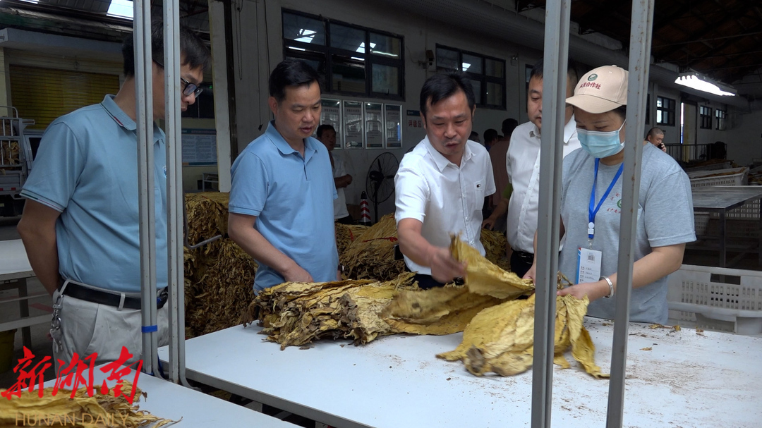 在松柏站潇浦烟叶收购点,何德波实地查看烟叶品质、收购流程、收购分级等工作环节,详细询问今年烤烟价格、收购进度、收购秩序等情况。