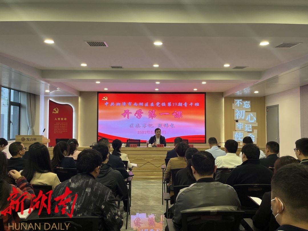 雨湖区委书记段伟长为青干班学员讲授开学第一课。