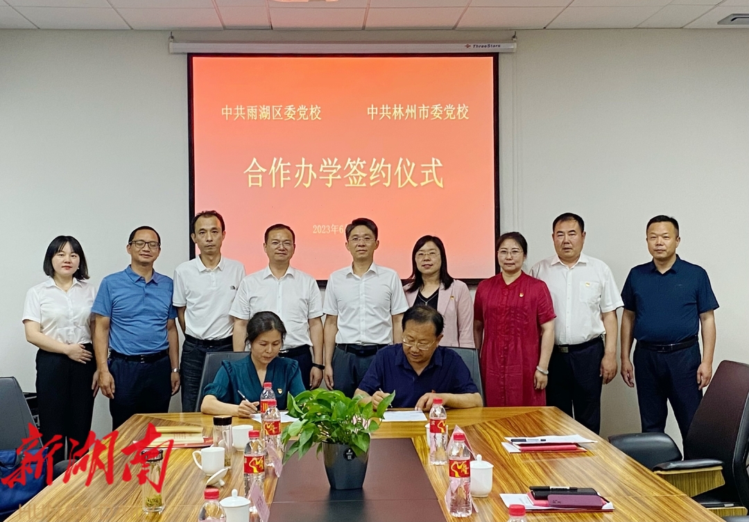 雨湖区与林州市委党校洽谈、签订合作办学协议。