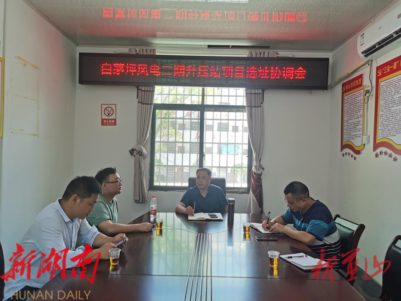 现场勘查后,在湖南湘江源国家森林公园管理局办公室现场召开蓝山白茅坪风电二期升压站项目选址协调会,会上达成了一致共识,对白茅坪风电二期升压站项目土地进行合理调整,重新选择新址。县自然资源局要尽快完成国土空间规划调整,尽快完成土地报批,各部门要大力支持中国华电公司风电项目建设,力争白茅坪风电二期项目早日建成投产。