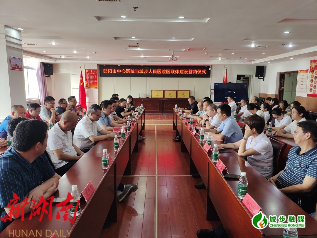 新城步客户端8月11日讯 ( 见习记者 王鲲)为加强院际之间的深入交流与合作,提升基层医院诊疗水平与医疗服务能力,8月11日,邵阳市中心医院与城步人民医院医联体建设签约仪式在城步人民医院举行。邵阳市中心医院党委委员、副院长郑核及相关科室负责人,城步卫健局相关负责人、城步人民医院班子成员及各科室负责人参加签约仪式。