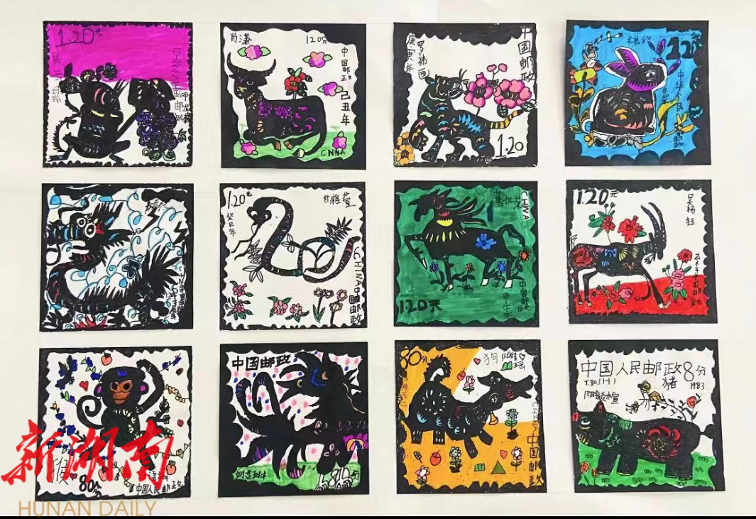 “参与省展的作品是一套以十二生肖为主题,以邮票设计为载体的文创图案设计。小朋友们用线描版画的形式,生动形象地描绘了动物的特征,表现了中国的特有文化。”谭晴雨说。