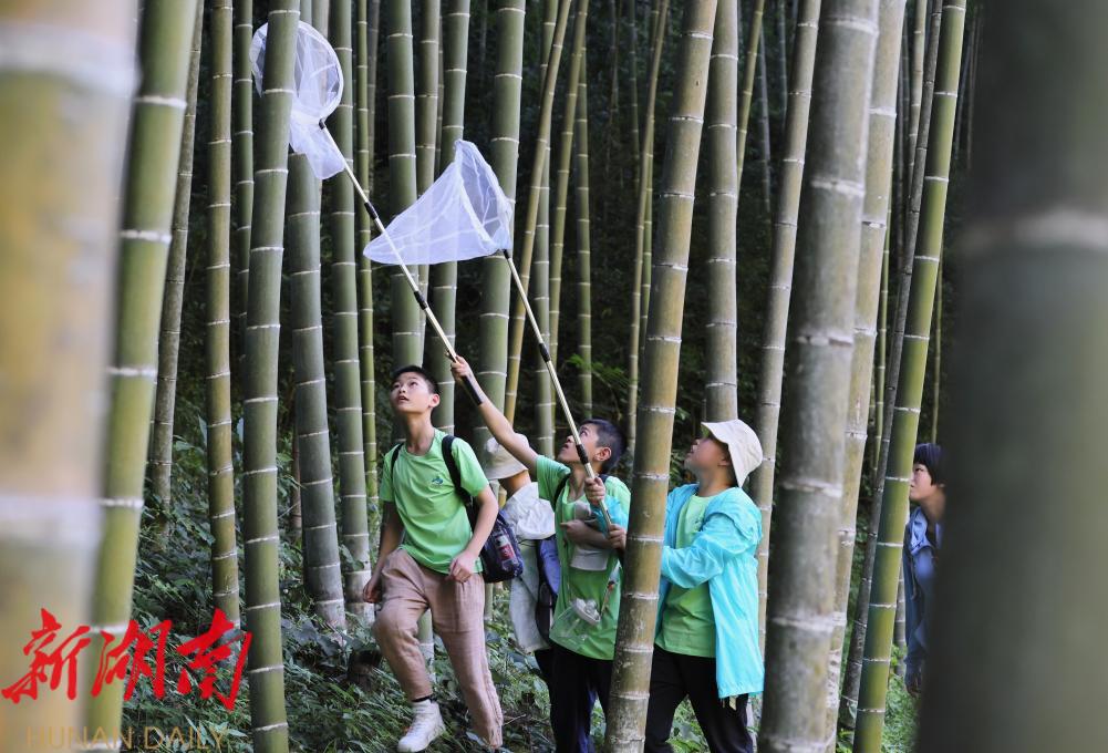 2022年7月23日,首届武夷山国家公园自然教育活动中,中小学生在武夷山国家公园大竹岚捕捉昆虫。新华社记者 姜克红 摄