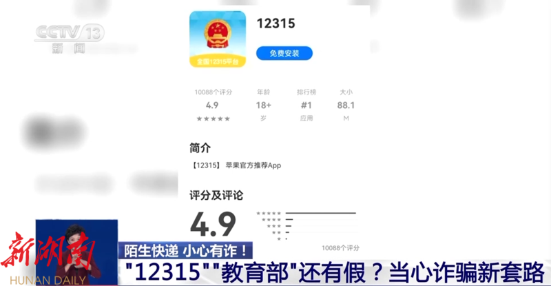 总台央视记者 叶奂:这个就是我根据对方提供的链接下载的“12315中消协”软件,其实它是假冒的。旁边这个“全国12315平台”蓝色标识才是真正的官方软件,是我们从12315官方网站上下载下来的正规软件。像这样花样翻新的诈骗手段还有不少,我们一定要提高警惕。
