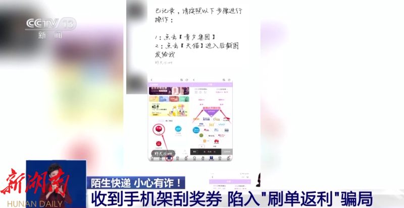 深圳市公安局龙岗分局民警 何柱:突然收到不明的快递,里面竟有小礼品、有中奖卡甚至还有打着国家机关名义的退费通知,要警惕,这是近期高发的诈骗引流手段。快递里面无论是哪种物品,都有一个共同的特点,那就是要求你扫码进入群聊或是下载App、登录网站,一旦扫码入群后,群里的托会分享刷单获利的任务截图,诱使事主参与刷单返利任务或是投资理财,并发放小额佣金进行返利,获取事主信任。随后骗子以“充值越多、返利越多”为由引诱事主加大资金投入,以“任务未完成、操作异常”等借口拒不返还资金,直至事主发觉被骗。警方提示,当你收到来历不明的快递时,一定要提高警惕,仔细查看物流信息和派送信息,尽可能甄别来源。不要轻信任何名义的退费通知,不要轻易添加陌生人为好友,更不要扫描物品上的二维码,避免陷入骗子的陷阱。在扔掉物品前也要将二维码涂抹掉,避免有人捡到导致被骗。