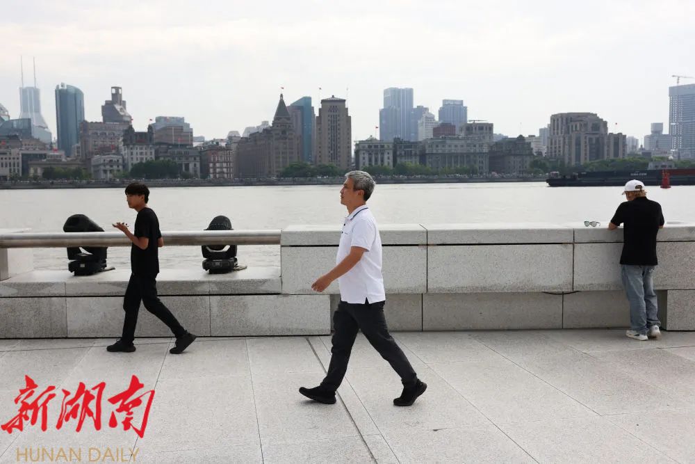彭承志行走在上海浦东滨江大道(7月22日摄)。
