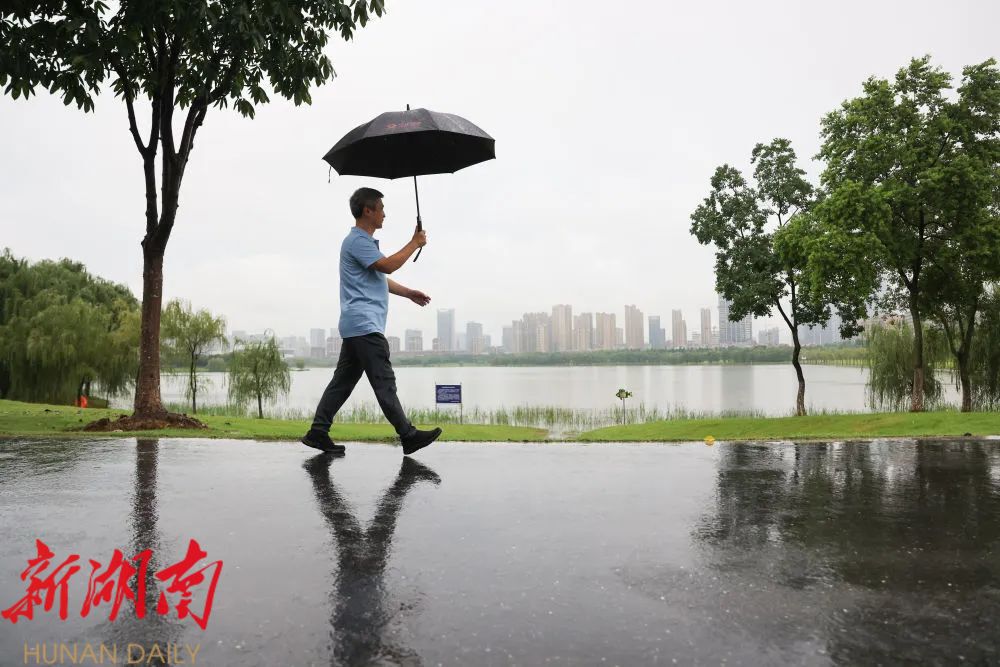 彭承志行走在安徽合肥蜀西湖边(7月21日摄)。