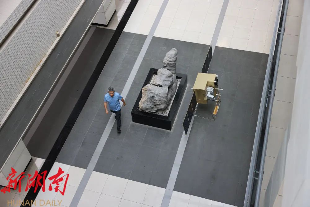 彭承志在科大国盾量子技术有限公司楼梯前留影(7月22日摄)。