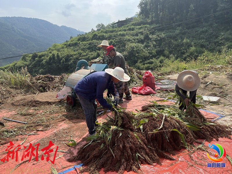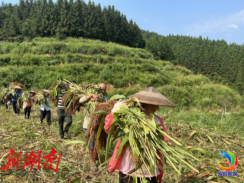 满地的高粱整齐排列,颗粒饱满的高粱穗不仅压弯了枝头,村民们头戴草帽,无不体现丰收的喜悦。“今年高粱收成很好,政府来帮忙抢收,公司3块钱一斤收购,我也不担心销路。”大桥江乡石垅溪村民舒旧花与大伙拿起镰刀,走进自家高粱地里,开始了一天的辛勤劳作。