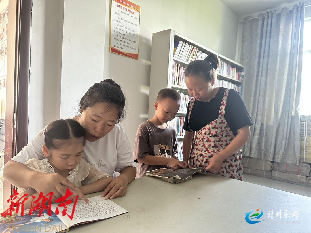 靖州融媒8月17日讯 (记者 胡映辉)“自从有了农家书屋后,村民们一有空闲就来看书、借书,这里已经成为了大家学习技术、快速致富的‘加油站’。” 8月14日,靖州苗族侗族自治县艮山口便民服务中心灯塔村的农家书屋内,三五村民或坐或站,正聚精会神地阅读, 在“文化粮仓”里尽情享受文化盛宴。