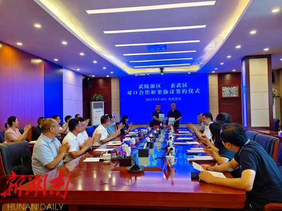 湖南日报·新湖南客户端8月15日讯(记者 王娇 通讯员 陈城)8月14日下午,南京市玄武区•张家界市武陵源区对口合作座谈会在武陵源区召开。武陵源区委书记张龚,南京市玄武区委书记闵一峰出席会议并讲话。张家界市发改委党组副书记、副主任宁家繁,玄武区政协副主席、区发改委党组书记、主任吴恒,区(局)领导张冲、李巍、董府宁、唐丽参加会议。