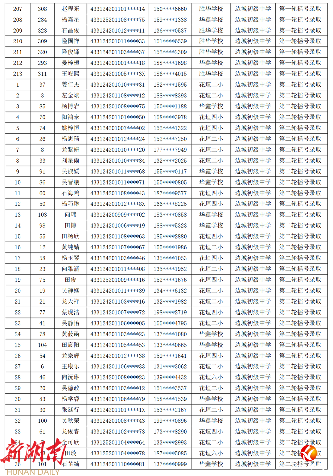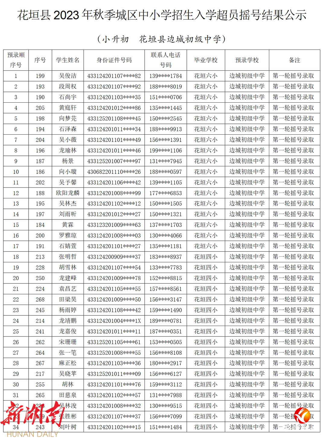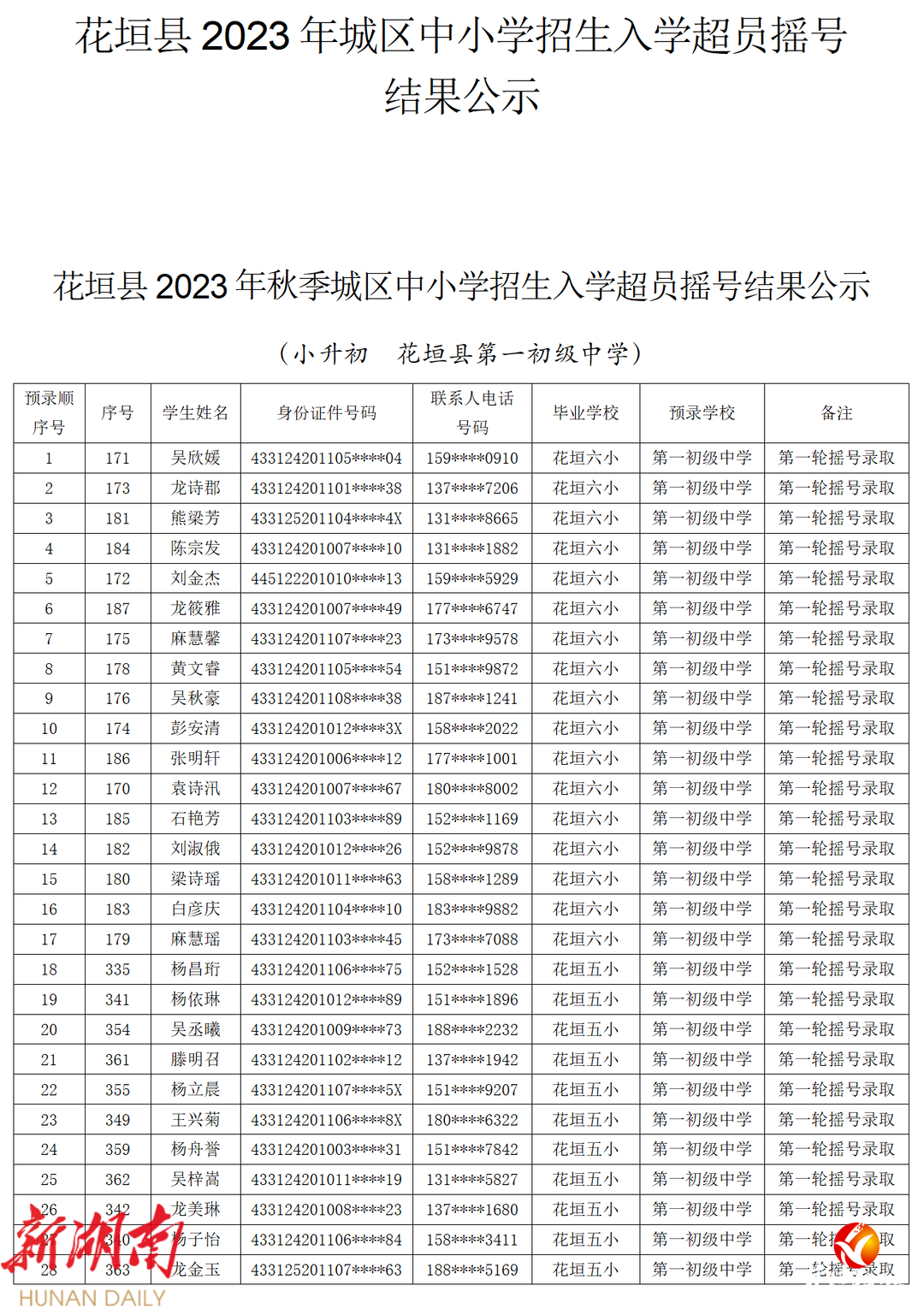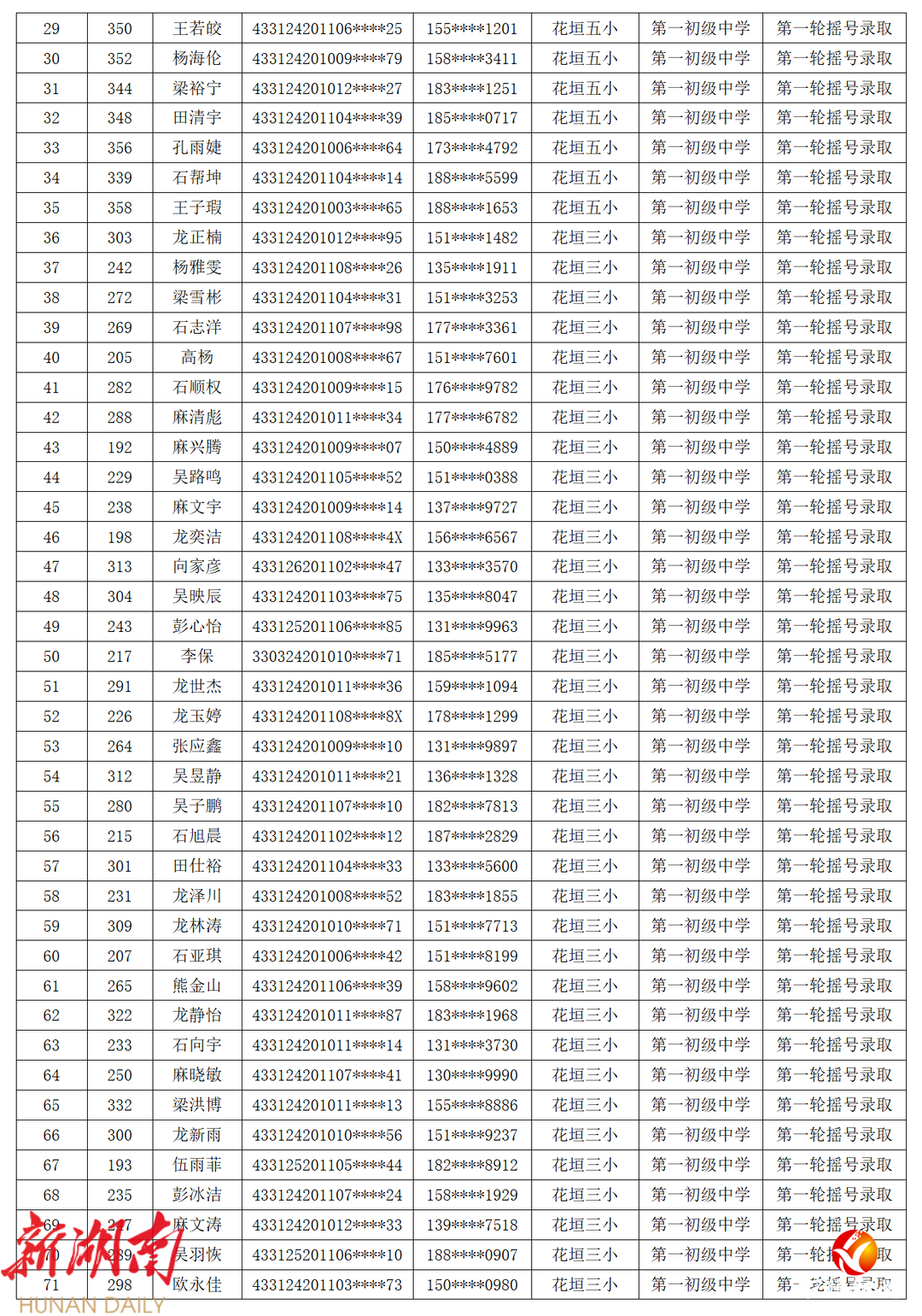 花垣县2023年秋季城区中小学现场摇号结果出炉