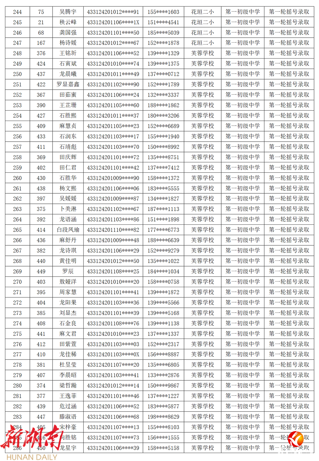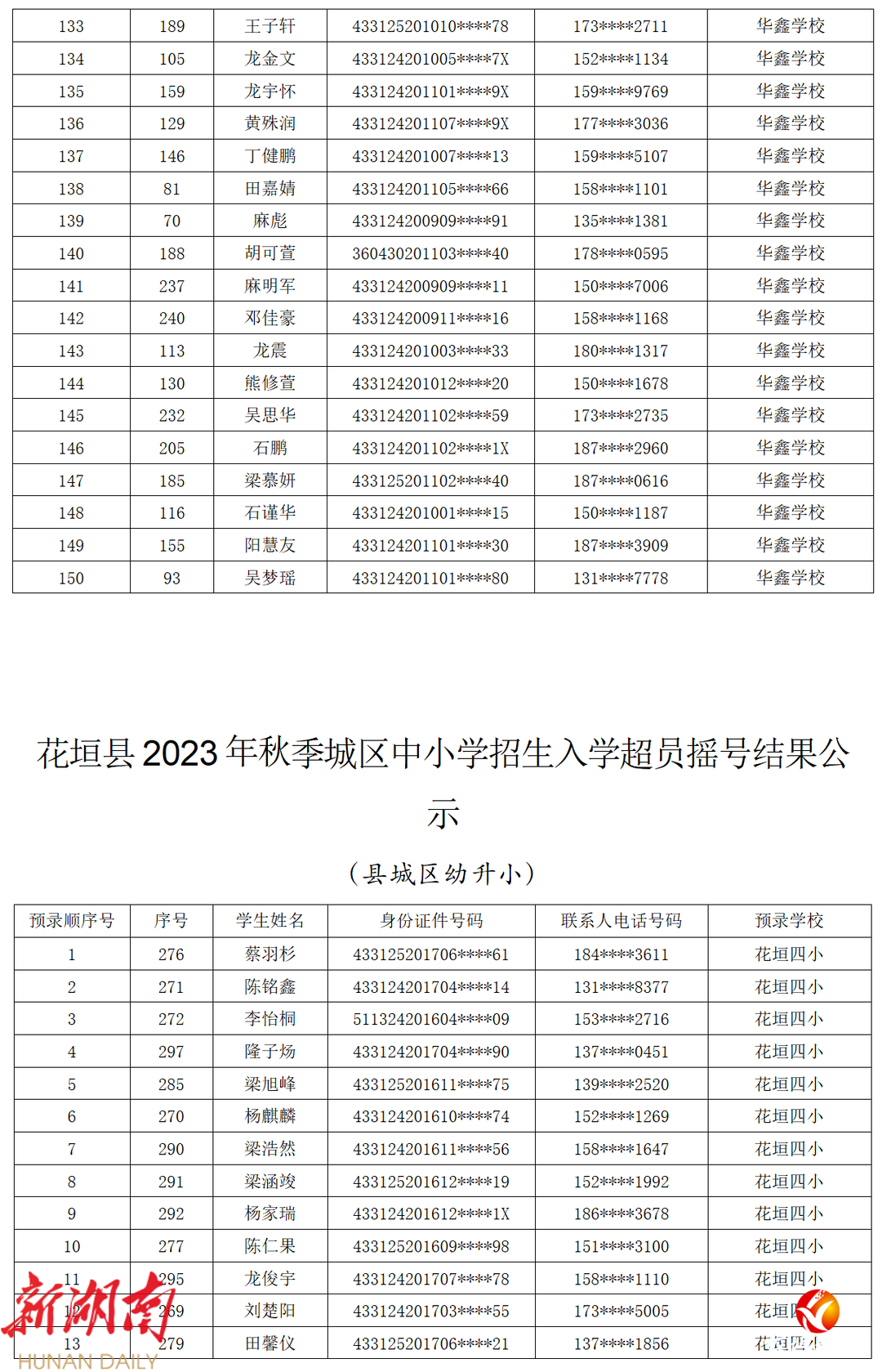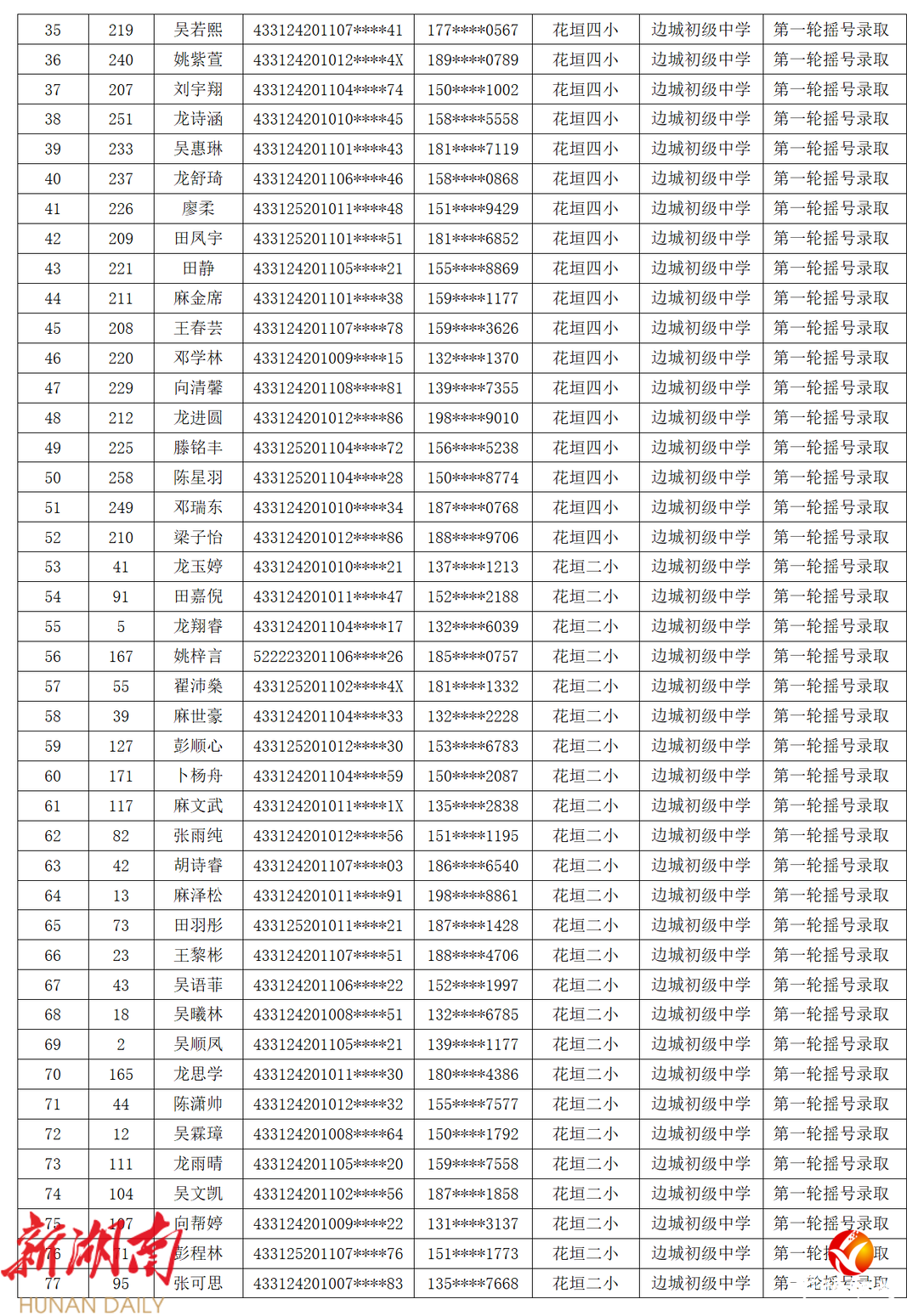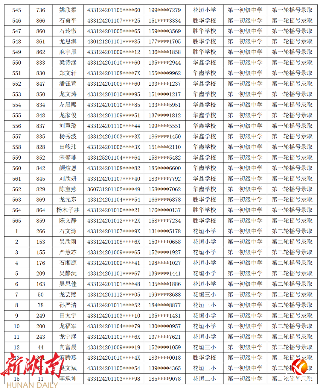 花垣县2023年秋季城区中小学现场摇号结果出炉