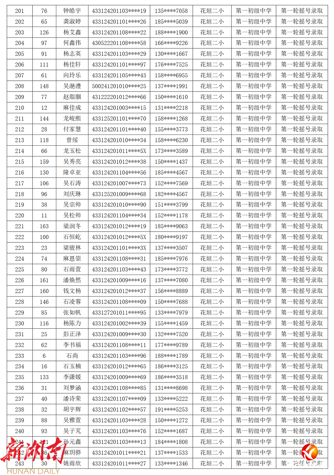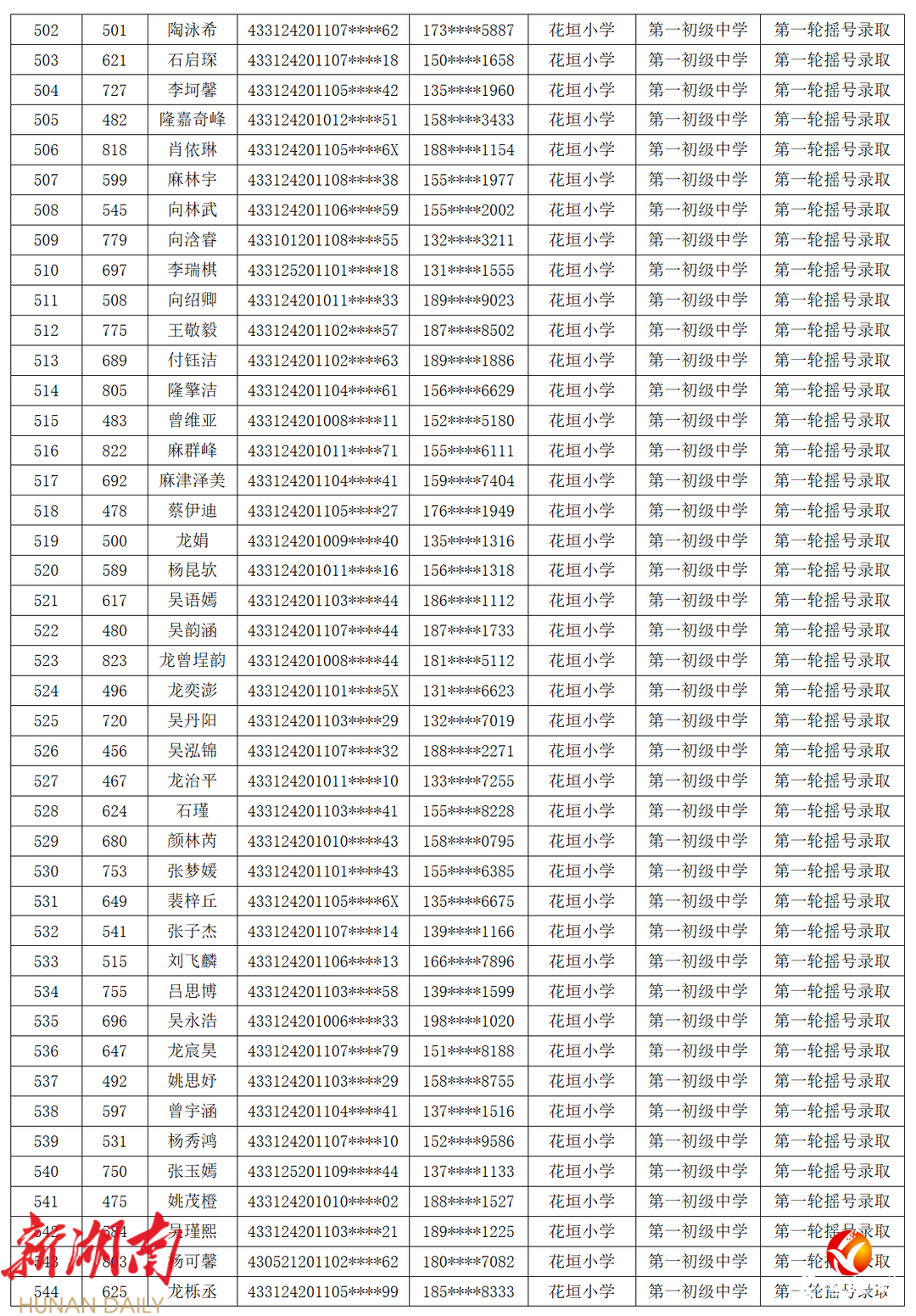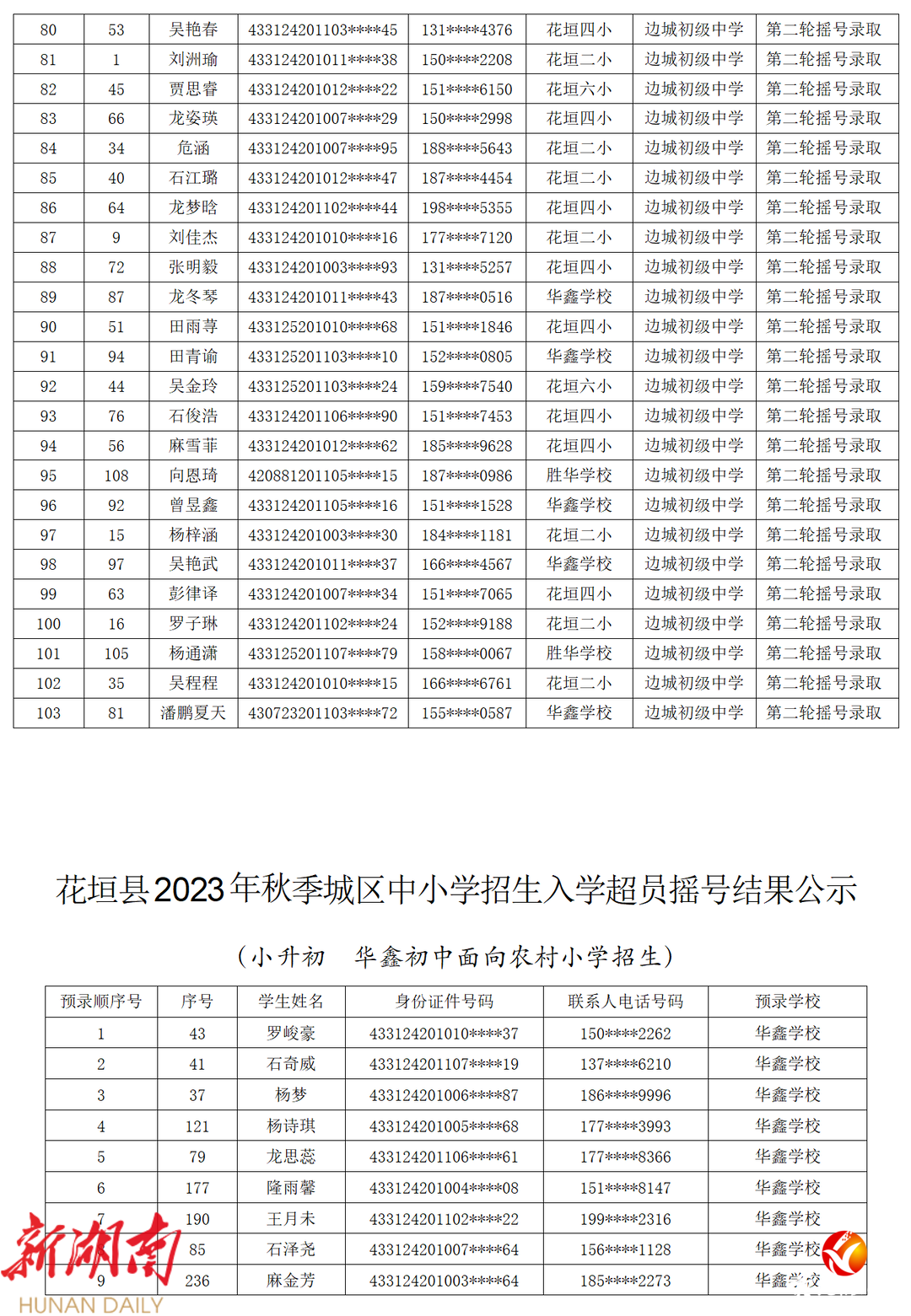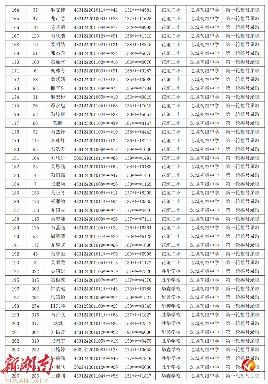 花垣县2023年秋季城区中小学现场摇号结果出炉