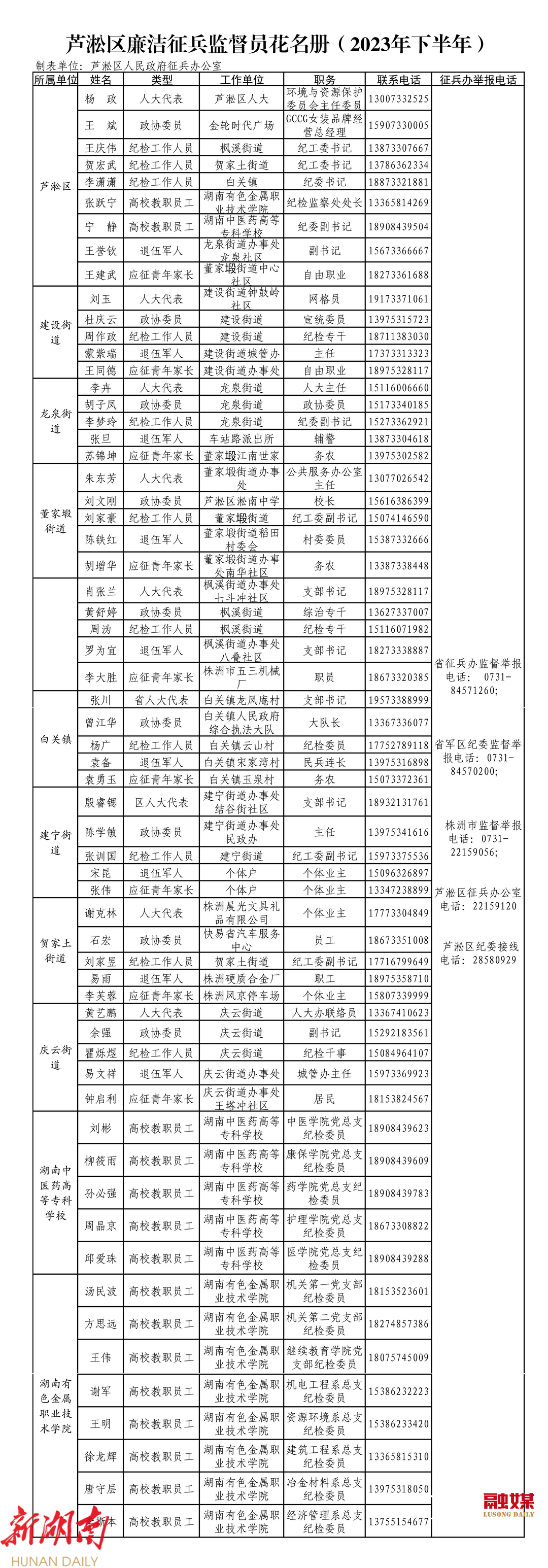 2023年下半年征兵工作全面展开,为深入贯彻党风廉政建设要求,落实国防部征兵办公室关于廉洁征兵有关要求,有效维护广大应征青年的合法权益,增强征兵工作透明度,自觉接受人民群众监督,保证全区征兵工作公开、公平、公正,区人民政府征兵办公室对2023年下半年廉洁征兵监督员及监督举报电话进行公示,欢迎社会各界人士对我区2023年下半年征兵工作进行监督。