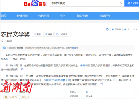 被广大网友视为“中国民间最具影响力文学奖项”的“农民文学奖”的多位获奖者一度或成为本地的“乡贤”或成为具有全国知名度的“网红”,如2014年第一届的农民文学奖得主蒋慕平曾获评“年度十大新闻人物”,成为许多妇女的榜样;第二届农民文学奖得主危勇因为一首18字《咏鸡》诗爆红网络,时任山东省委书记姜异康在全省农村工作会议上号召农业大省山东学习湖南举办农村文化月和农民文学奖的成功经验以及危勇关注生活、书写生活的精神;第三届农民文学奖得主余秀华成为20世纪90年代以来最近30多年唯一一位诗集过百万册销量的现象级诗人;第五届农民文学奖得主梁武钦的半自传体小说《一位农民工35年的寻梦之旅》影视版权受到多家影视公司青睐;第七届农民文学奖得主张正超一度是协助乡村治理的乡贤,“村事不决问张爹”……十年沉淀,“农民文学奖”的知名度和影响力业已远远超过不少体制内的文学奖项,成为中国民间“最出圈”最接地气的草根奖项。
