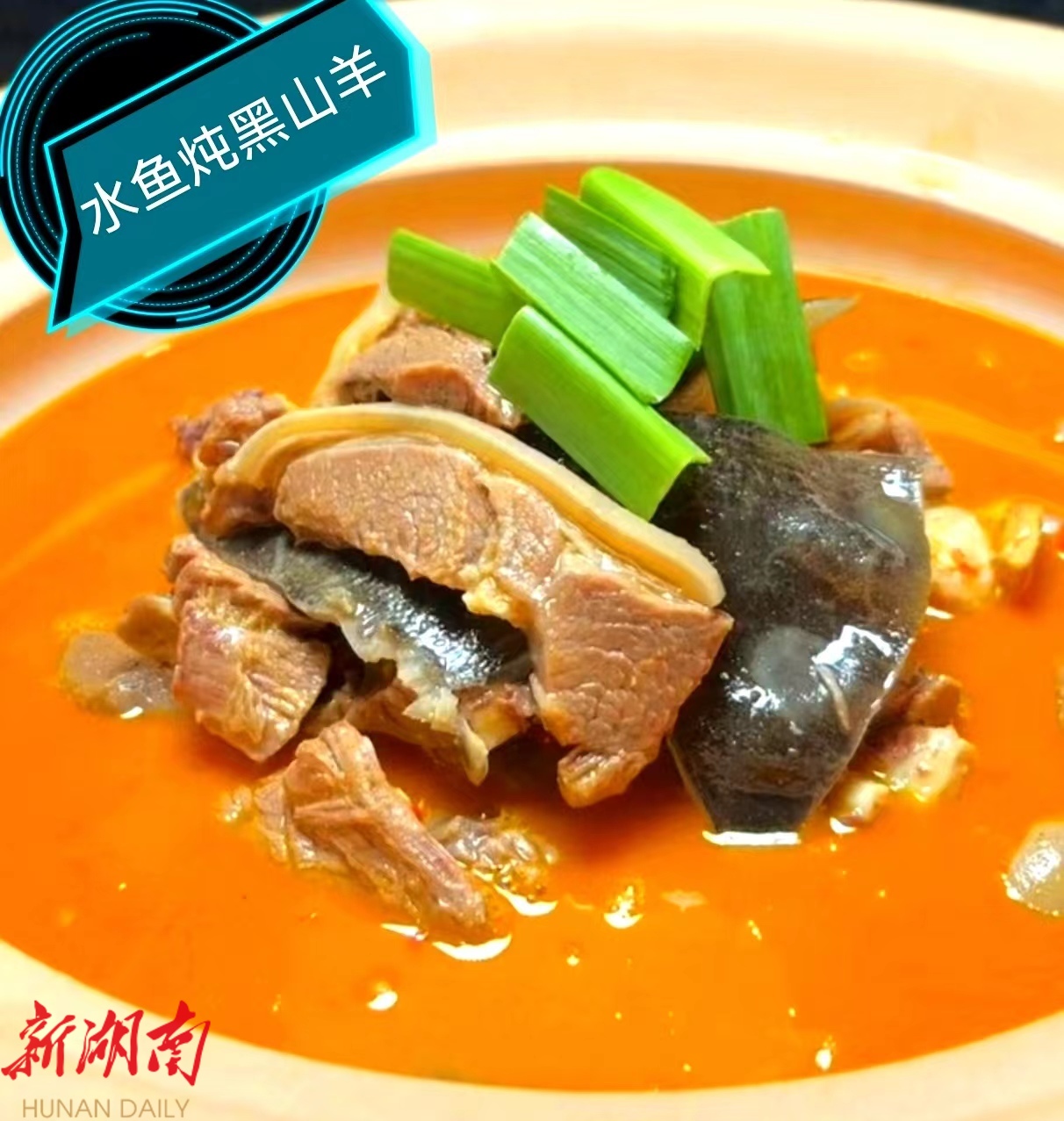 水鱼炖黑山羊肉质鲜美嫩滑。