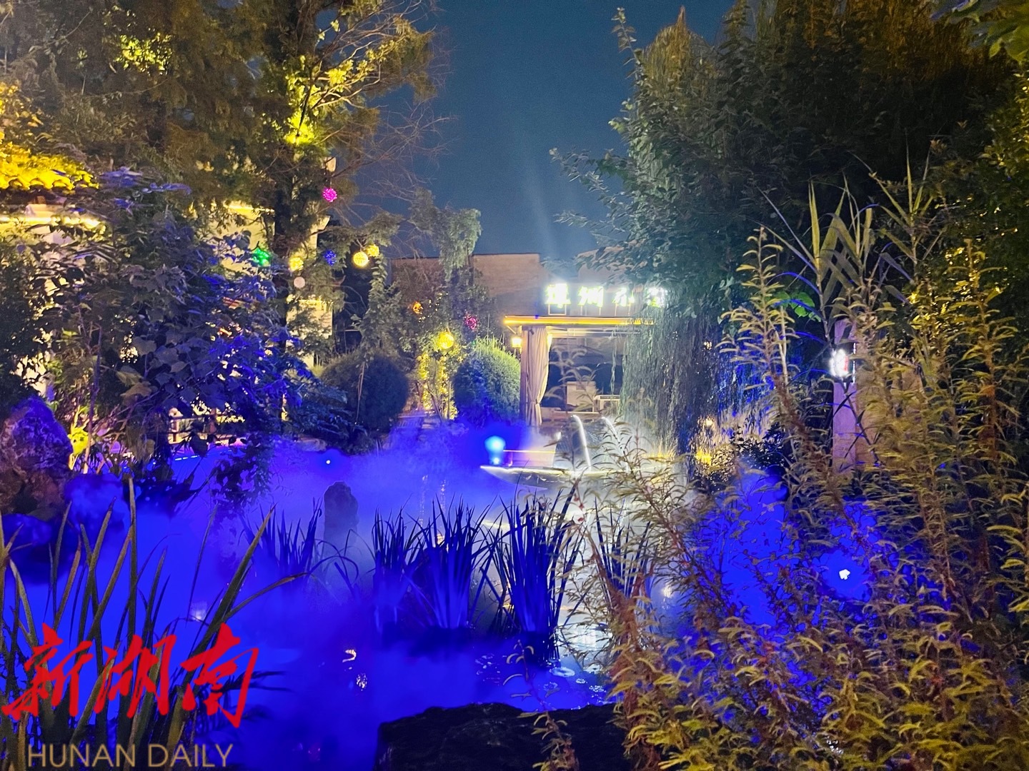 白天的潭洲小院一片宁静,晚上的潭州小院则如同置身云顶天宫了。云雾缭绕,紫光乍现,亭中还有吉他手驻唱。“我希望提供一个顾客在等菜或者等人时可以走一走、看一看、乐一乐的观赏性庭院,这样才更有氛围,顾客就餐也更有仪式感。”老板谭建伟告诉记者。