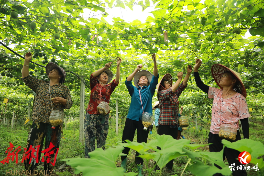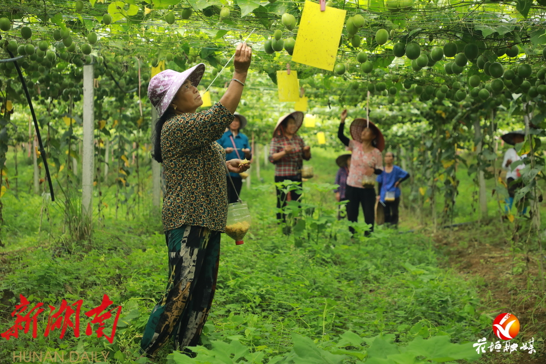 眼下,花垣县花垣镇紫霞村罗汉果种植基地里,罗汉果花进入盛花期,果农们正抢抓时节,将雄花花粉“点”到雌花上,提高罗汉果的坐果率和质量。