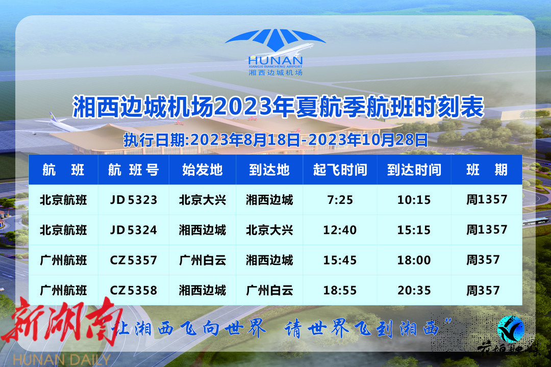 湘西边城机场2023年夏航季航班时刻表来啦!
