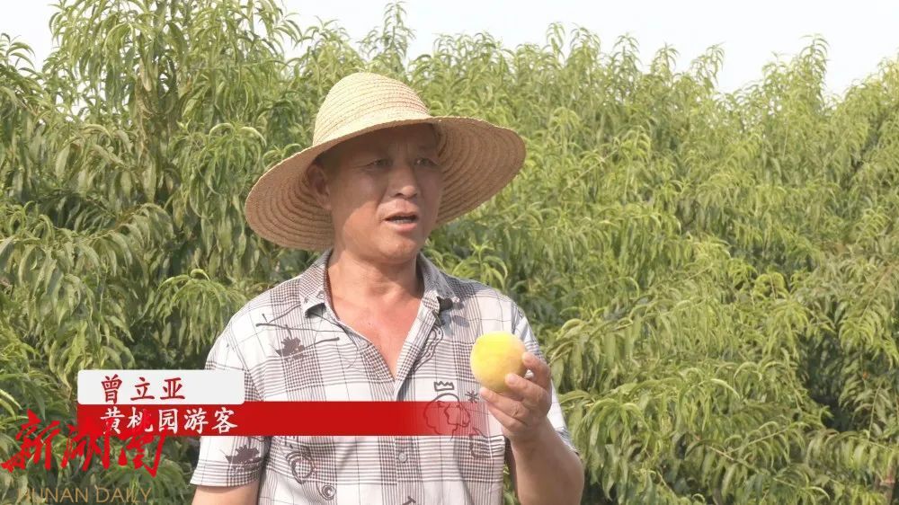 黄桃园游客 曾立亚:这里的黄桃味道特别好,又大,又脆,又甜,水分又足,而且来这里吃自己亲手采摘的黄桃味道更好,我基本上每年都要来这里采摘。