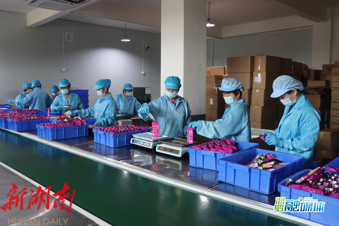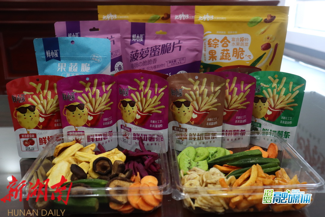 走进湖南池塘湾农业发展有限公司生产车间,车间空调开放、货品码放整齐,数十名女工正忙着称重、分装、打包薯条,一包包薯条检验合格"出炉",即将销往零食店、商超、便利店及东南亚、中东等地。