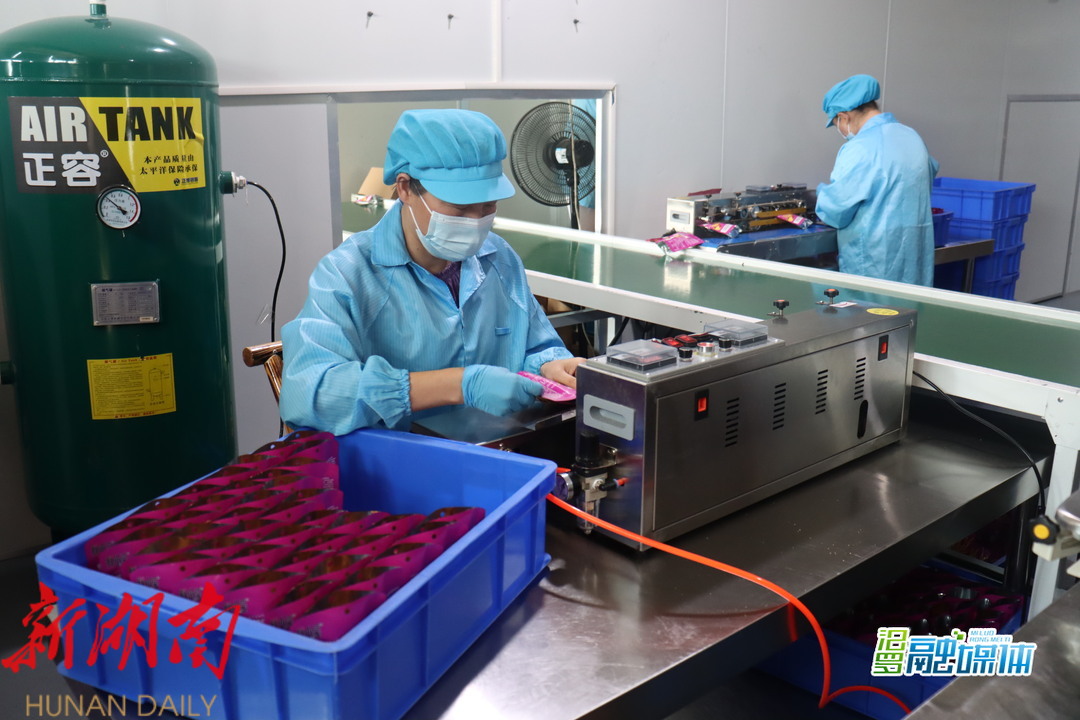 湖南日报·新湖南客户端8月21日讯(通讯员 张慧)立秋之后,农事渐少,但在汨罗市古培镇南环村湖南池塘湾农业发展有限公司,是一派热火朝天的生产景象,工人们正忙着打包、装箱"鲜小爱"零食,发往全国各地。