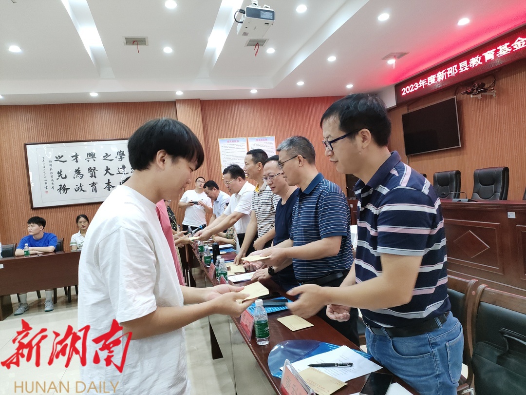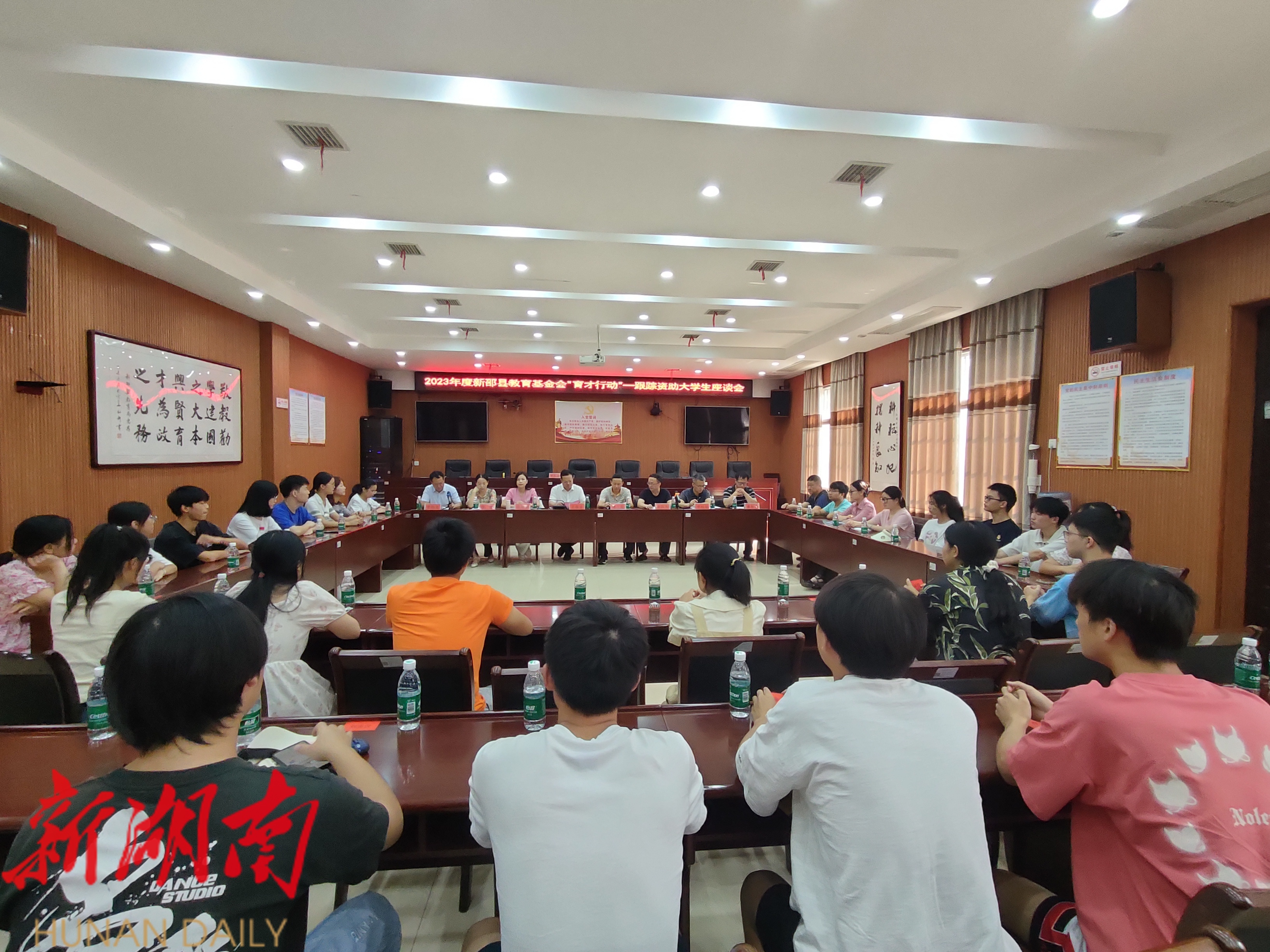 新新邵客户端8月19日讯 8月19日,2023年度新邵县教育基金会“育才行动—跟踪资助大学生座谈会”召开。会上,包含10名2023级大学新生在内的40名新邵籍优秀大学生每人获得了5000元的资助。