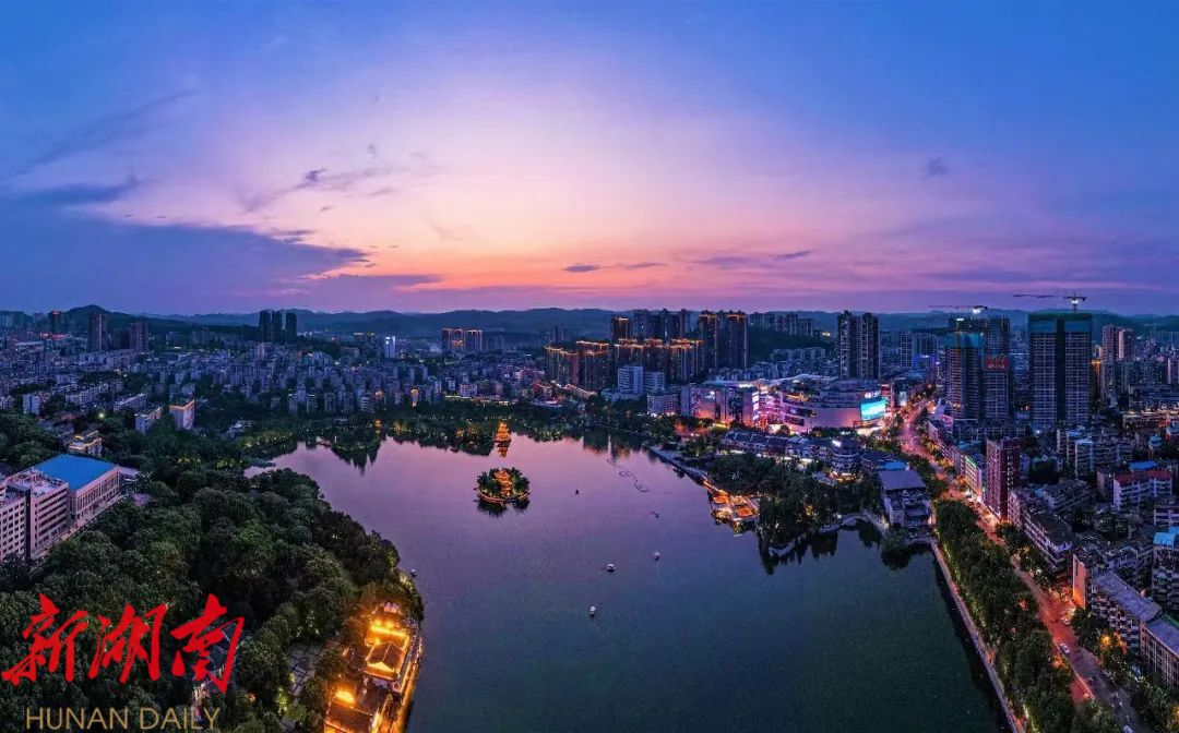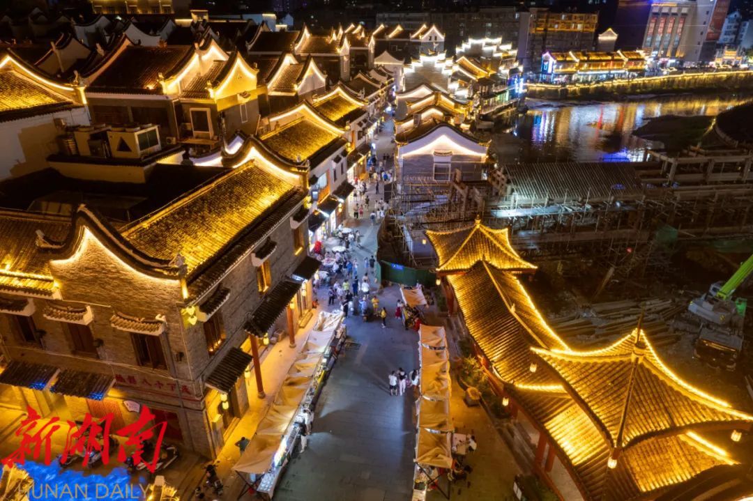 月升于湖面,落清晖于屋檐,有一种夜色,叫做“北湖水月”。“北湖不夜天”位于郴州市北湖区,夜间灯光秀、水幕光影剧、画舫夜游等各样的晚间画卷让人流连忘返,璀璨的灯光将夜晚变成五彩斑斓的模样。