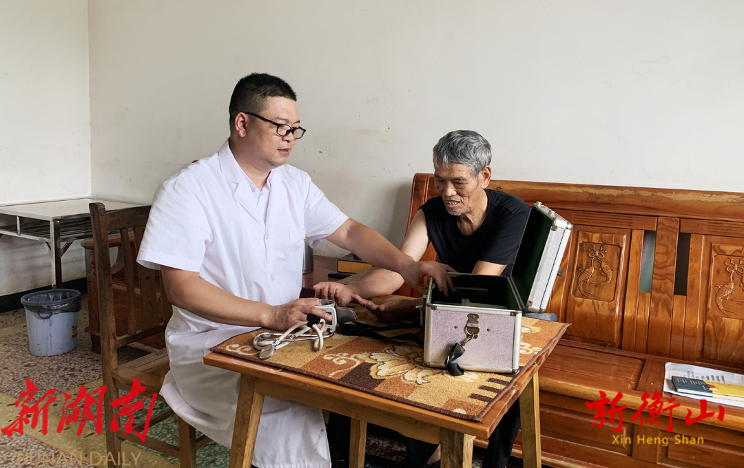 衡山县融媒体中心8月22日讯【记者:蒋鹏 郭硕晨】秋日的雨后,暑气未消,让人燥热不安,但得知胡医师今天要来入户随访,仍有不少老人聚集在村民家里等待他到来。这时一个身影出现在门口,他就是开云镇金溪社区村卫生室乡村医生胡传武。