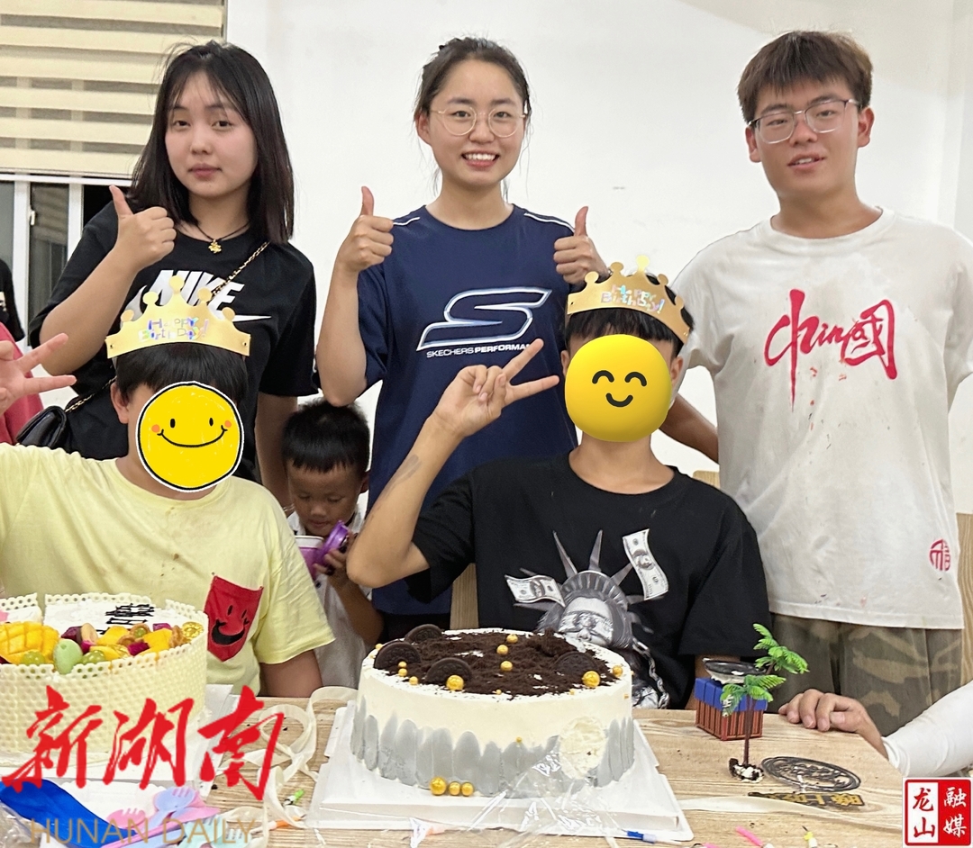 龙山县融媒体中心 8 月 24 日讯 (通讯员 杨苗 ) 8月 22 日 傍晚 , 龙山大学生联合会一行5人来到县社会福利院为两位小寿星过生日。现场,所有的孩子都收到了蛋糕和零食礼包。