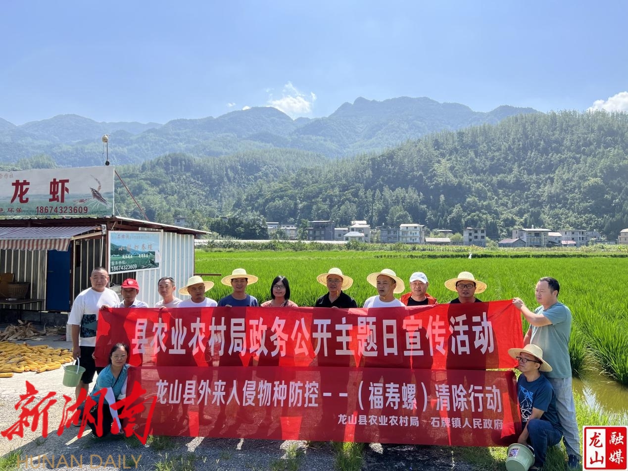 活动中,县农业农村局 开展了宣传摸底,加强福寿螺防控相关法律法规、物种形态、防控技术等科普宣传,形成全社会共同参与的良好氛围;工作人员在田间地头开展为期一个月的福寿螺专项清理行动,建立外来有害生物防控工作协调机制,将福寿螺防控纳入河面保洁打捞范围;县农业农村局、生态环境、乡镇等部门通过协作会商、联合行动推动属地责任落实、强化部门联动,共同抓好外来入侵物种防控。