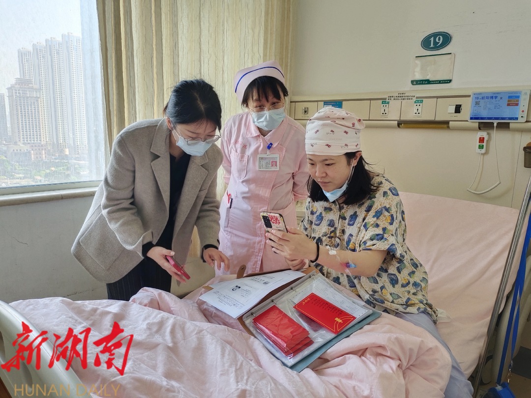 开福区行政审批服务局工作人员指导产妇使用湘易办APP
