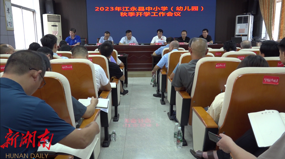新江永客户端讯(记者 欧阳文 通讯员 何永成 王江玲 林满仔 )为确保秋季开学暨校园安全工作准备充分、措施有力、落实到位,切实保障广大师生健康安全。8月25日,江永县召开2023年中小学校(幼儿园)秋季开学暨校园安全工作会议。江永县人民政府副县长蒋剑平出席会议,县教育局负责人及全县各中小学校长、中心幼儿园园长参加会议。