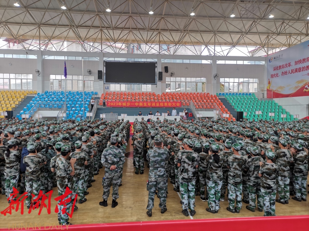 新城步客户端8月29日讯 (记者 毛学军)8月28日上午,城步一中2023级新生军训总结表彰大会在该校体艺馆举行。