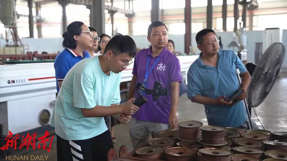 活动中,采写团先后来到邓权塑业科技(湖南)有限公司、湖南鸿云杭萧绿建科技有限公司,深入企业车间厂房,利用手机、微单、无人机等设备进行实地拍摄,并与企业负责人深入交流,详细了解企业发展历程、生产经营、企业文化、市场拓展等情况,探寻企业高质量发展“密码”。