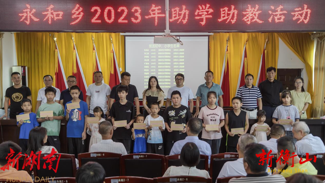 衡山县融媒体中心8月28日讯【记者:廖晶 通讯员:唐韬 赵勇】情暖金秋,爱在永和。为进一步凝聚新乡贤力量,更好发挥新乡贤在助力乡村振兴、反哺家乡、助力寒门学子圆梦的重要作用。近日,永和乡积极组织乡贤人士开展捐资助学助教活动。省卫生健康委原党组成员、副主任、一级巡视员彭振国,副县长周孝兵参加活动。