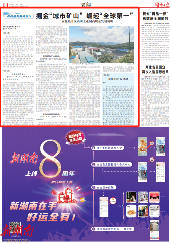 “彻底淘汰落后的装备和产能。”安化县副县长、新材料产业链链长瞿东江介绍,去年高明工业园吹响“扩容、提质、延链”号角,通过“壮大一批、整合一批、淘汰一批”促进产业转型升级。今年,园区关闭3家技术工艺落后、效益低下的企业。