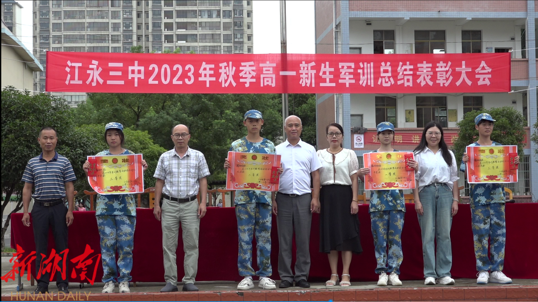 新江永客户端讯(记者 谢琳) 8月2 8 日 下 午, 江永三中 2023级 高一 新生军训完美收官,并现场开展会操表演 。