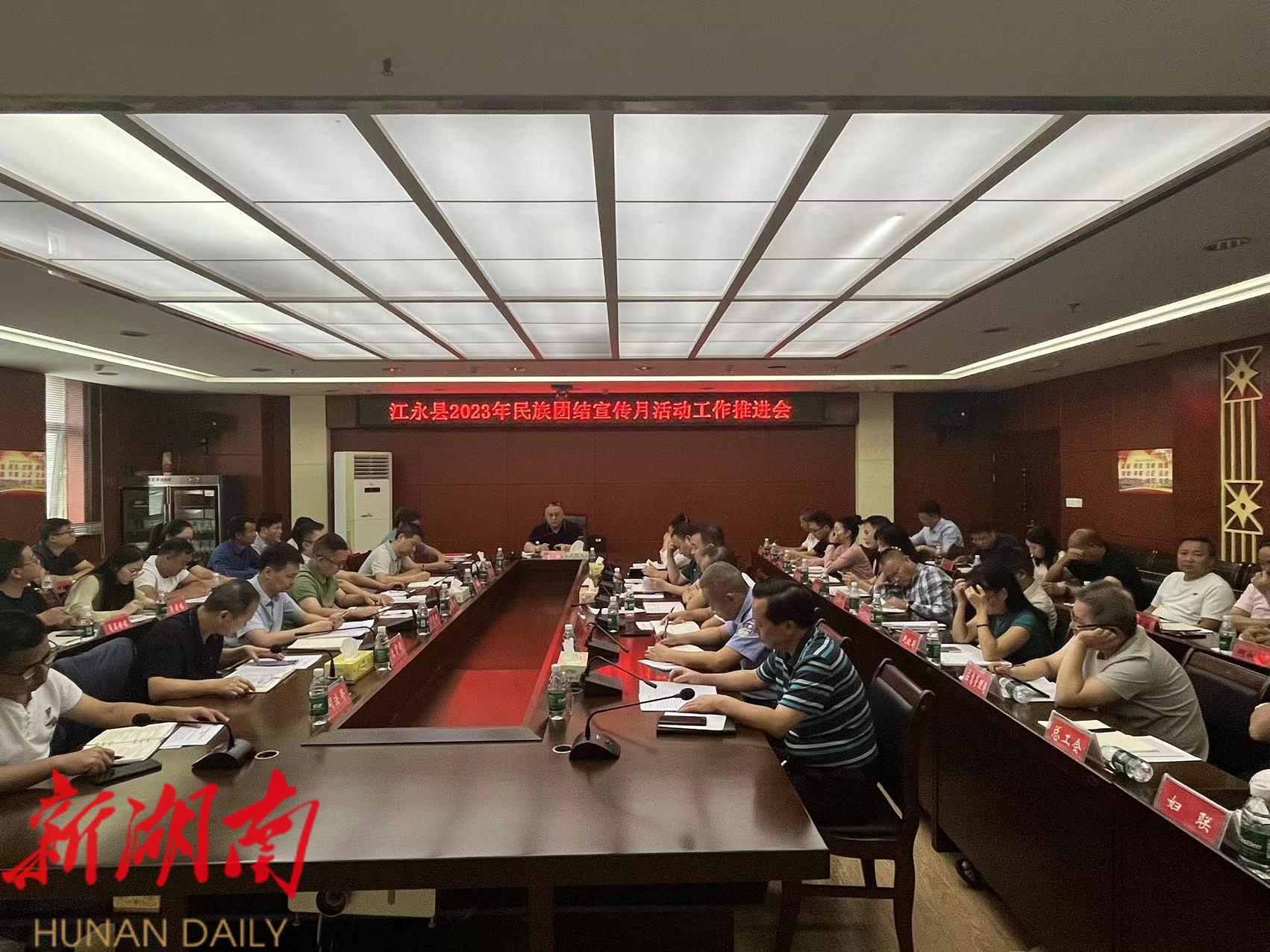会议传达学习习近平总书记关于民族工作的重要论述,宣读《江永县2023年民族团结宣传月活动方案》,对全县民族团结宣传月活动工作做了安排部署。