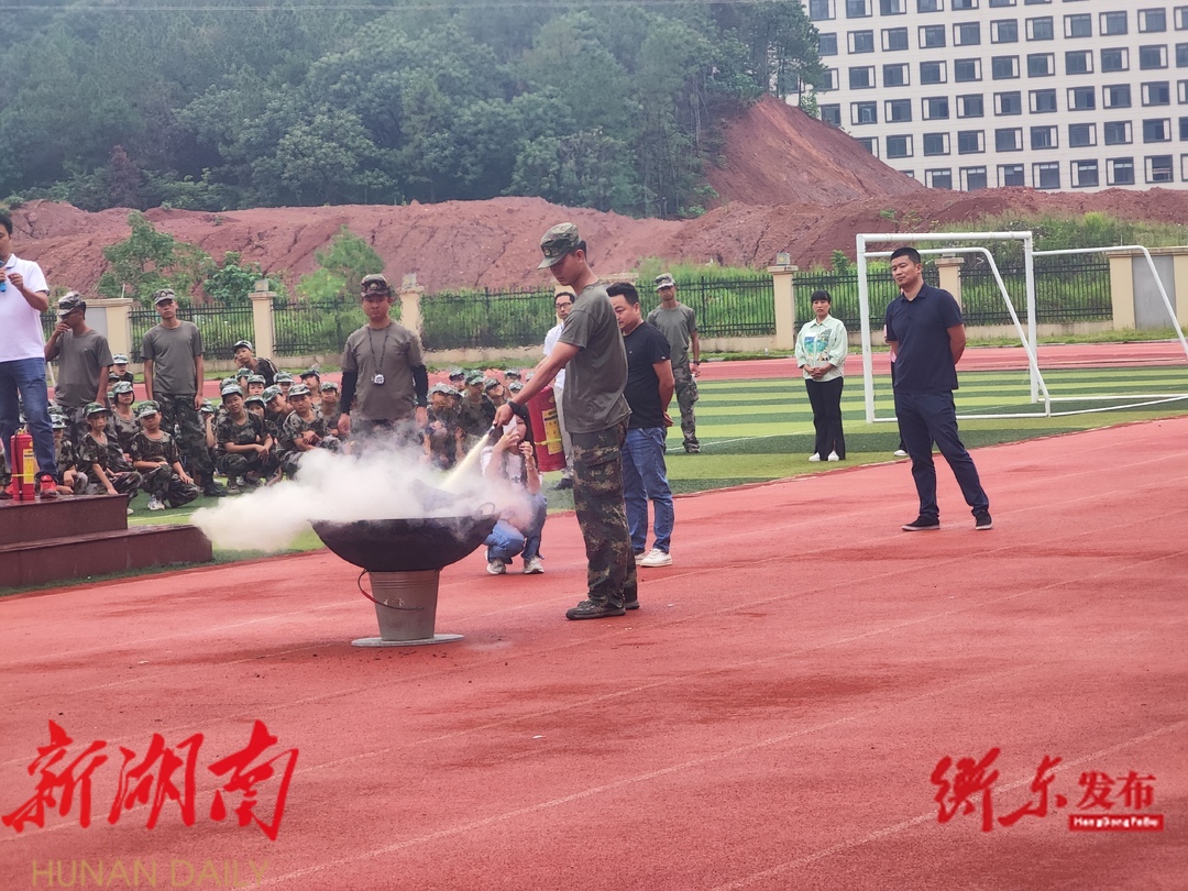 杨山实验中学把消防相关知识与军训有机结合,消防应急逃生演练、消防安全知识培训、灭火实操体验等阶段,让师生从理论到实操全方面的学习, 让学生们了解遇到火灾时如何逃生、如何自救和呼救,为筑牢校园安全、消防安全防线打下坚实基础。