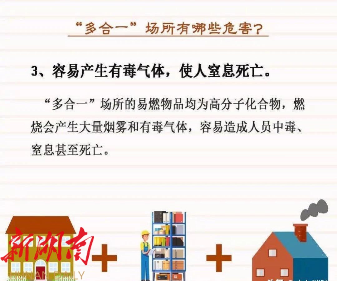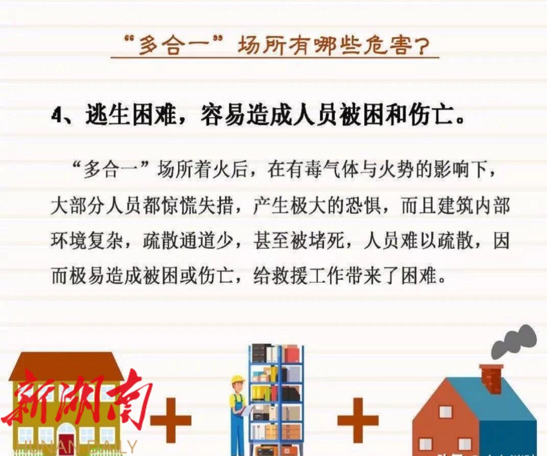 常见的类型有家庭作坊式“多合一”场所、商业类“多合一”场所、餐饮娱乐类“多合一”场所等。我们来了解一下到底“多合一”场所有哪些危害。