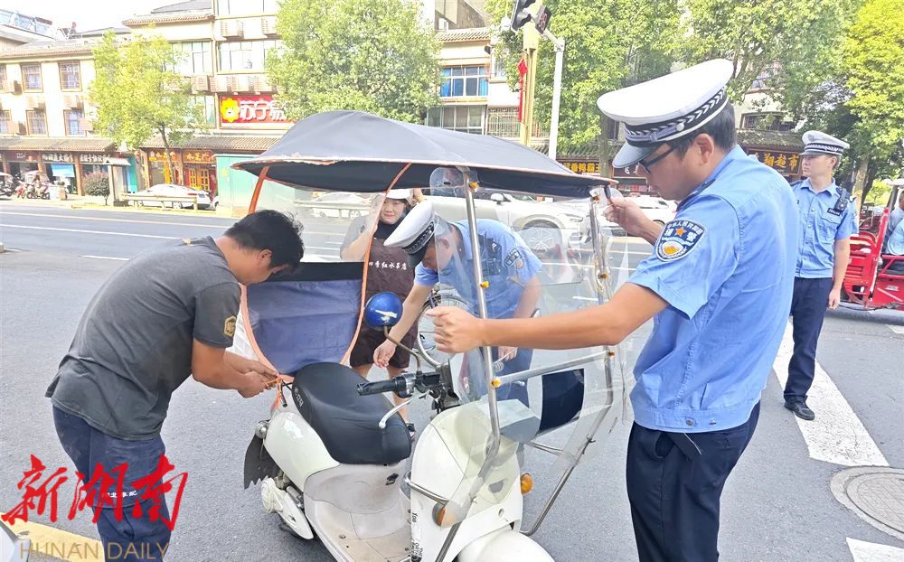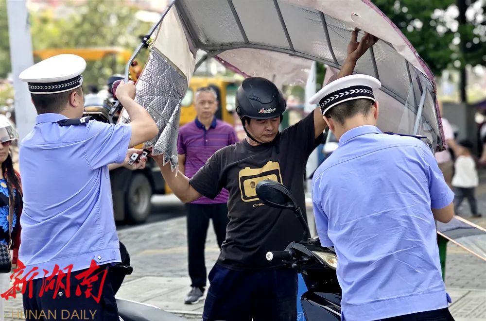 为有效遏制因摩托车、电动车非法加装遮阳棚和不戴头盔引发的道路交通事故,保障辖区道路交通秩序安全有序,营造和谐、平安出行环境。连日来,西洞庭公安分局交警大队积极组织警力采取“白+黑”的巡逻方式在辖区各个路口、路段开展摩托车、电动车非法安装遮阳雨棚,未戴头盔安全隐患整治行动。