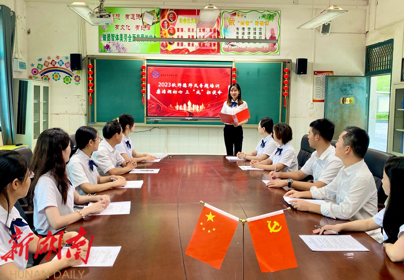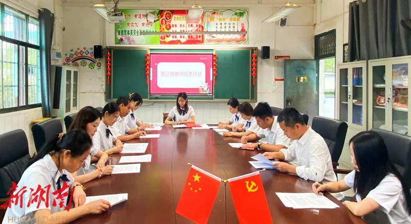 会上,学校党支部书记为全体教师进行师德宣讲,传达了2023年暑假干部培训班的会议精神,学习了《2023年8月教育部公开曝光7个违反教师职业行为十项准则典型案例》,对最新的请假规定和绩效考核方案进行了详细的阐述和解释,引导老师们以案为鉴,告诫老师们要守住教书育人的底线,牢记立德树人的崇高使命,坚持教育与育人相统一,更好地担负起学生健康成长引路人的责任。全体教师签订师德承诺书,明确教师职责,以期更好地履行教师职业道德,塑造良好的教师队伍形象。