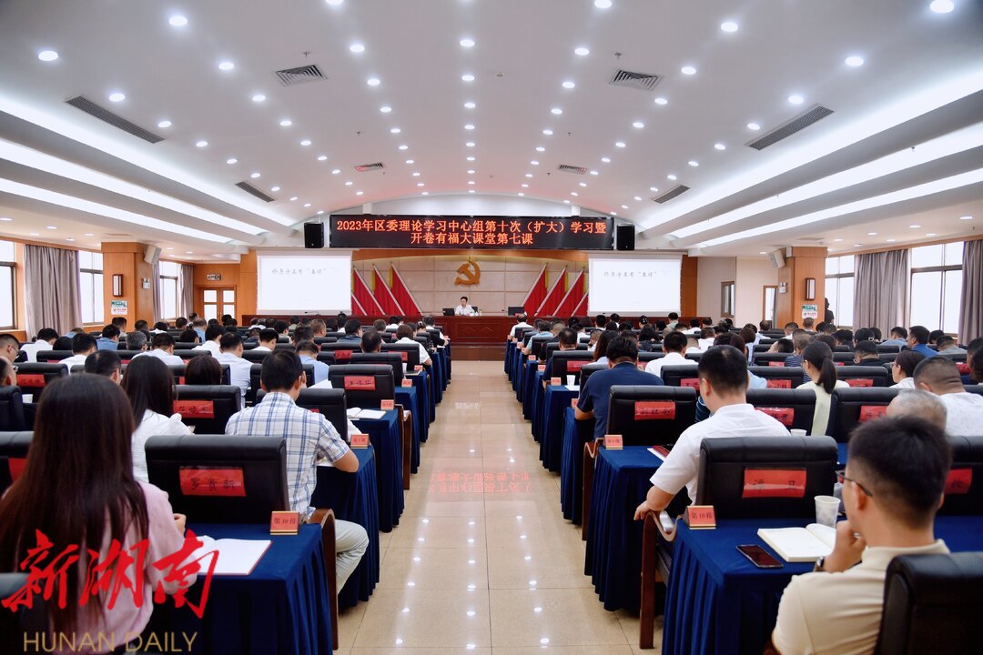 湖南日报·新湖南客户端8月30日讯(记者 荣庭芳)今天下午,长沙市开福区举行区委理论学习中心组集体学习暨“开卷有福”大课堂第七课,深入学习领会习近平总书记关于全面从严治党、推进自我革命的重要论述;深入学习习近平法治思想,深刻领悟习近平法治思想的丰富内涵和实践意义。特邀湖南省委第三巡视组组长董石桂现场授课。区委书记罗玉环,区委副书记、区长高伟出席。在家区“四大家”班子成员,区属各部门、各街道党政主要负责人参加。