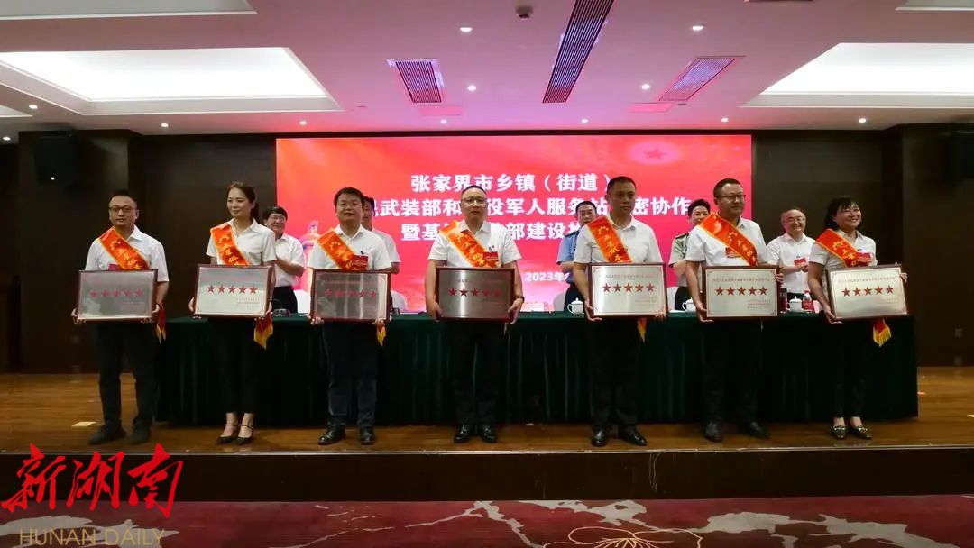 会上,与会人员一同观看了桑植县“一部一站”紧密协作暨基层人民武装部建设试点情况汇报视频短片,张贻龙宣布全市“五星”级基层武装部表彰通报,与会领导为全市14个先进单位授予“五星”级基层武装部牌匾,龙铁军安排部署了全市“一部一站”紧密协作暨基层武装部建设工作。