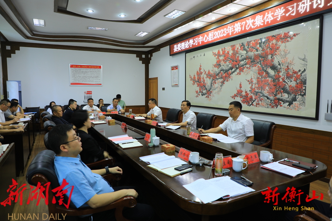 衡山县融媒体中心8月31日讯【记者:刘永欢 周彭斌】8月31日,县委书记戴新贤主持召开县委理论学习中心组2023年第七次集体学习研讨交流,专题传达学习《中共衡阳市委关于实施“制造立市、文旅兴城”发展战略 加快推进区域中心化进程的意见》文件精神。